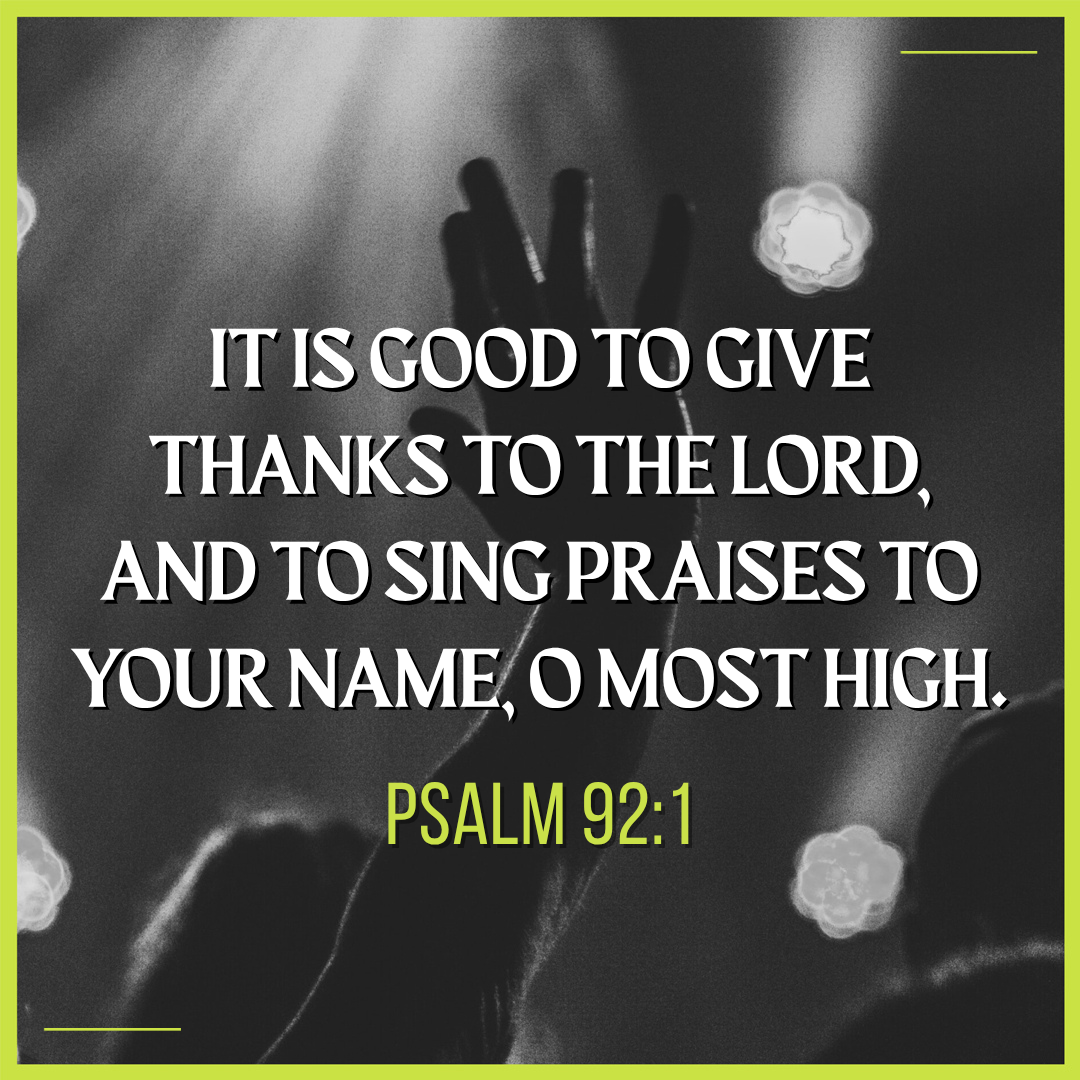 Scripture: “It is good to give thanks to the Lord, and to sing praises to Your name, O Most High.” – Psalm 92:1
