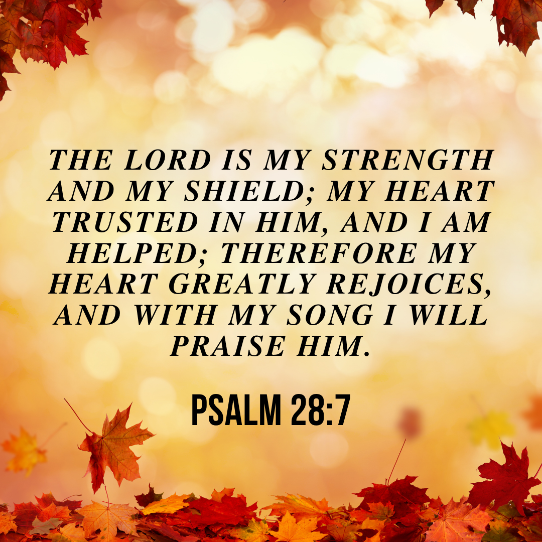 Scripture: “The Lord is my strength and my shield; my heart trusted in Him, and I am helped; therefore my heart greatly rejoices, and with my song I will praise Him.” – Psalm 28:7