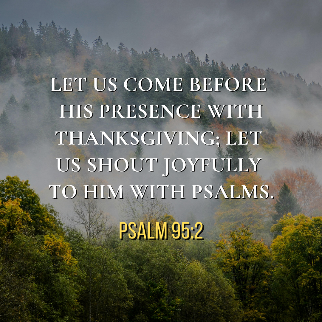 Scripture: “Let us come before His presence with thanksgiving; let us shout joyfully to Him with psalms.” – Psalm 95:2