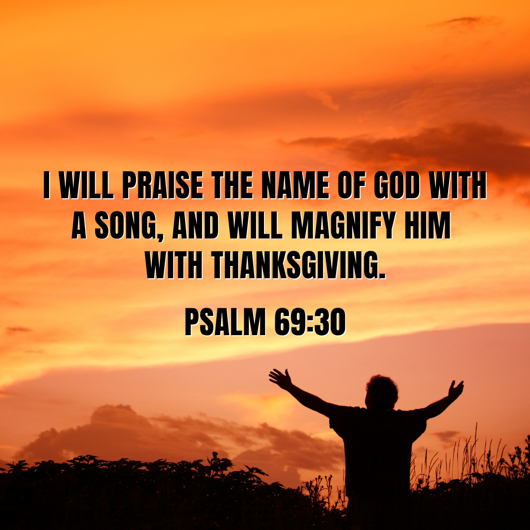 Scripture: “I will praise the name of God with a song, and will magnify Him with thanksgiving.” – Psalm 69:30