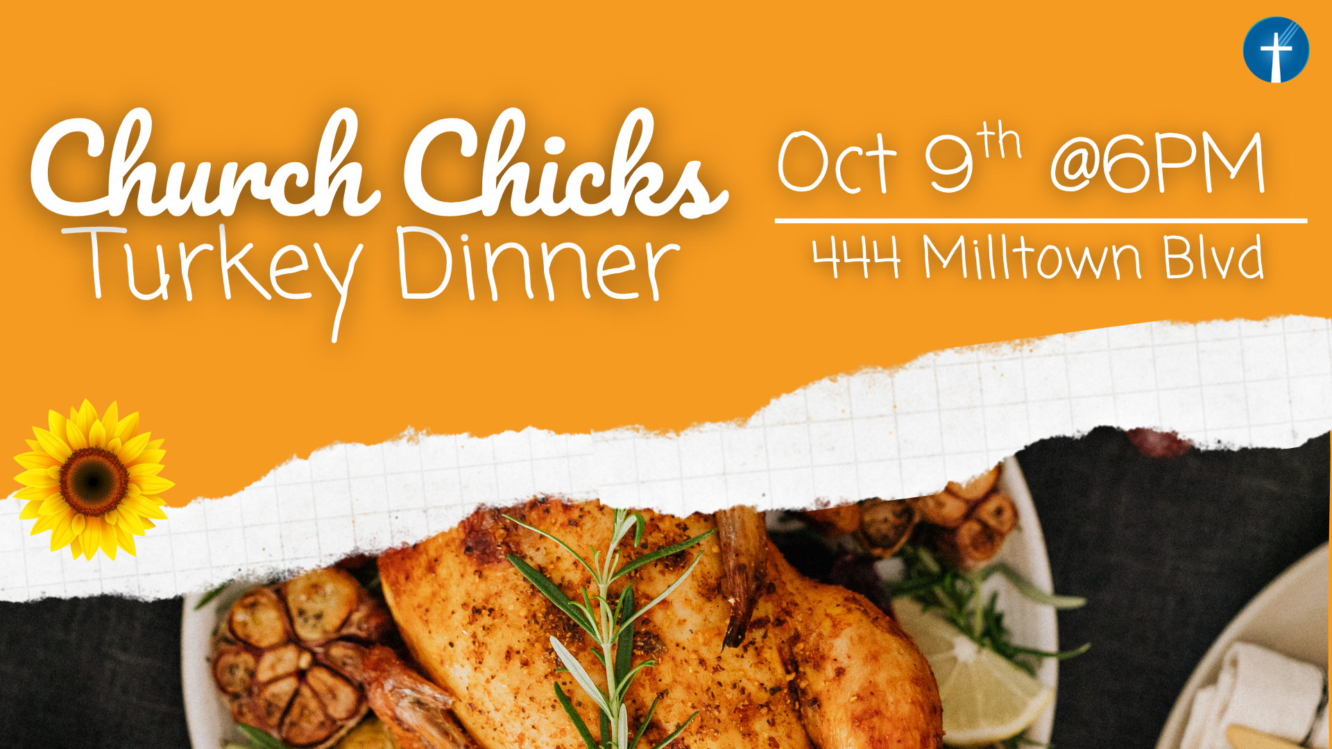 Hey Church Chicks! Join us for our next gathering on Thursday Oct 9th. We will be having a Turkey Dinner potluck.